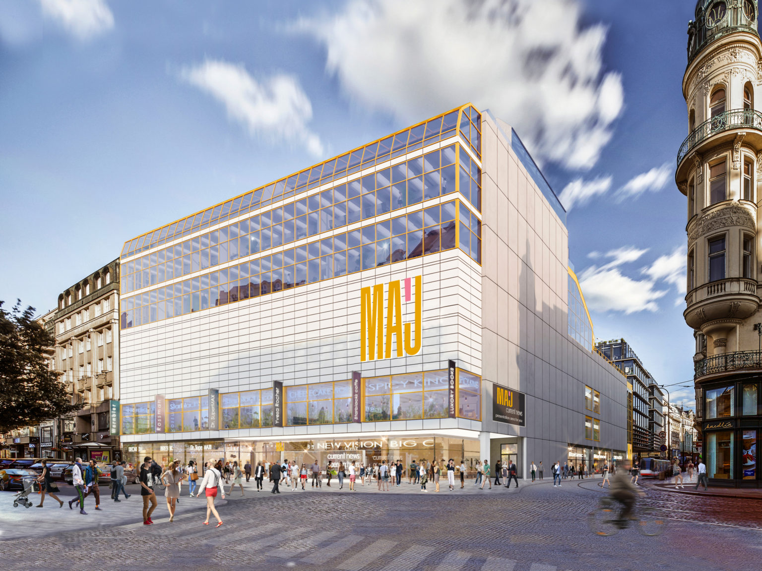 Máj svojí historickou hodnotou a umístěním na Národní třídě vytváří potenciál ke vzniku jedinečného místa v centru Prahy, které bude atraktivní nejen pro turisty, ale i pro každodenní život Pražanů. Na ploše 16 995 m² spojí obchody, gastro i zábavní park. Naváže tak na svou dlouholetou tradici obchodního domu a vytvoří prostor pro trávení volného času.
